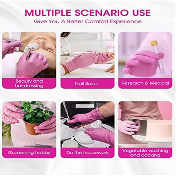 ZALCOON Nitrile Gloves Pink Powder Free 6 Mil Extra Small (1 Pack x 100 Pieces)