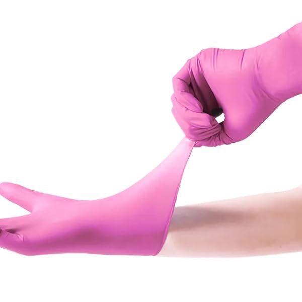 Zalcoon Pink Synthetic Nitrile Vinyl Blended Gloves, 4 Mil | Medium (M)| Powder-Free, Smooth, Non-Sterile, Pack of 100 Pieces quantity